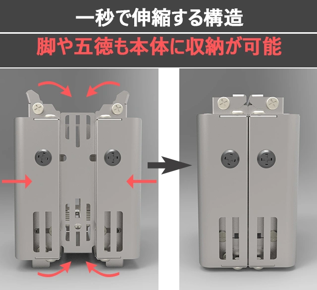 伸縮可能な構造を採用し、本体の展開はわずか1秒だけ。