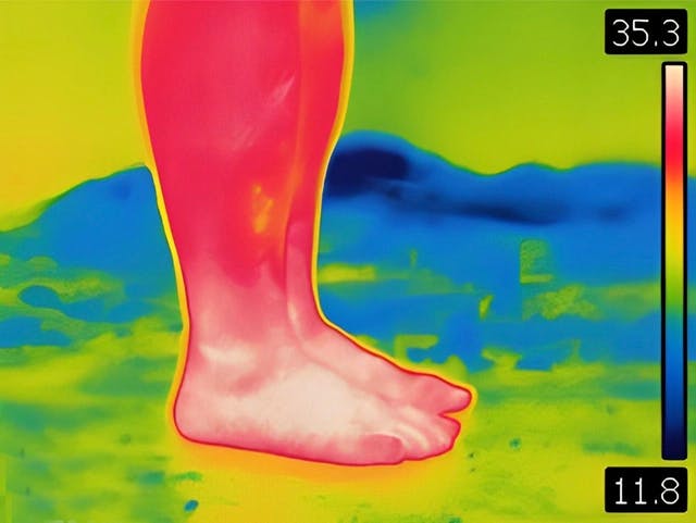 ブーツ着用前と着用後をサーモカメラで撮影した様子をご覧ください。