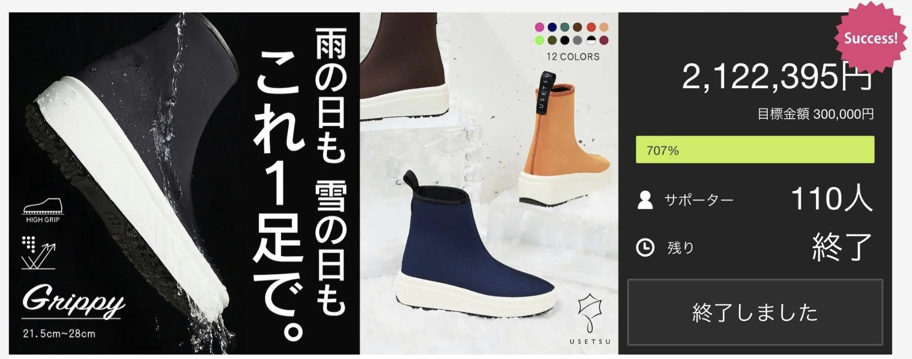 2024/01/24 18:24皆さまこんにちは!USETSUです。本日18時00分〜プロジェクトページをオープンさせていただきました!USETSUを運営する株式会社アルジェントは「真っ先に」お客様のお悩みに向き合い、商品作りをしたい、という想いから小さいサイズのシューズブランドを中心に、お客様に寄り添った商品開発をしているメーカーです。今回は特に北海道の方からの「暖かくて、滑らないだけじゃない、おしゃれなスノーブーツが欲しい!」というお悩みをきっかけにスノーブーツとしても使えて、レインブーツとしても使える、オールインワンシューズの開発が始まりました。レディースからメンズまで、幅広いサイズ展開も魅力ですので、是非パートナーとの2足買いも検討してみてくださいね。短い期間とはなりますが、何卒、ご支援のほどよろしくお願いいたします。 もっと見る