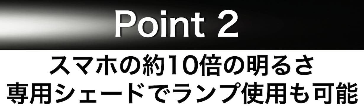 スマホの約10倍の明るさで暗い夜道を明るく照らします。