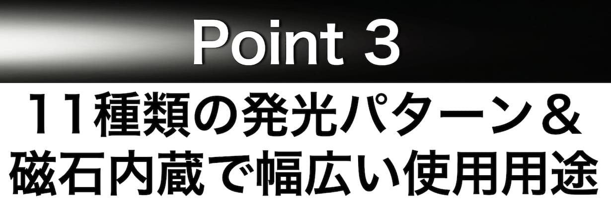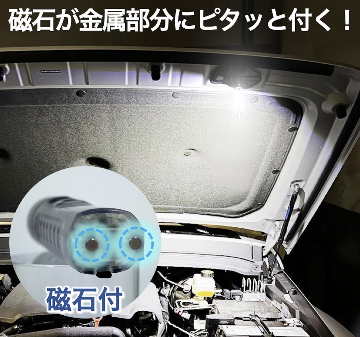 磁石内蔵で金属部にピタッとくっつくから作業をする時やあかりが必要な時にランプとしても役立ちます!