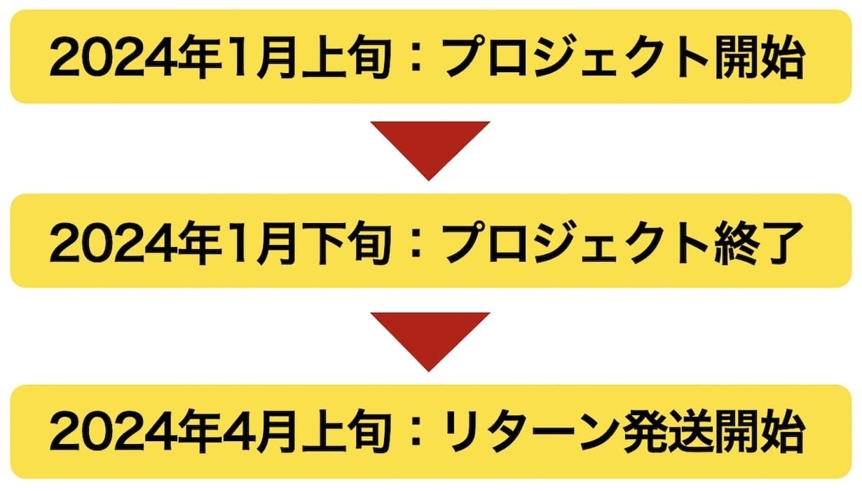 ※本文中に記載させていただいたスケジュールは、あくまでプロジェクト公開時点の予定です。 クラファンの性質上、配送遅延のおそれがございます。