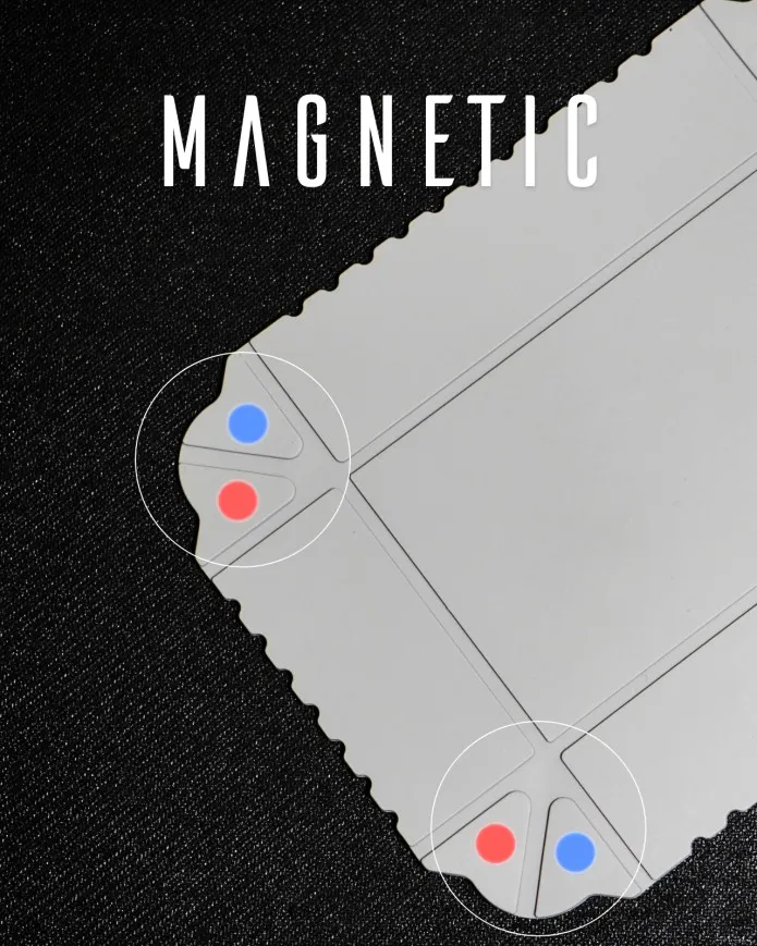 MAGBOXは、非常にシンプルな折り畳み構造を採用しており、8個の耐高温ネオジウム磁石が内蔵されています。非常に強力で、劣化が少なく耐久性が高い磁石を採用することで、安定した成形を実現しました。