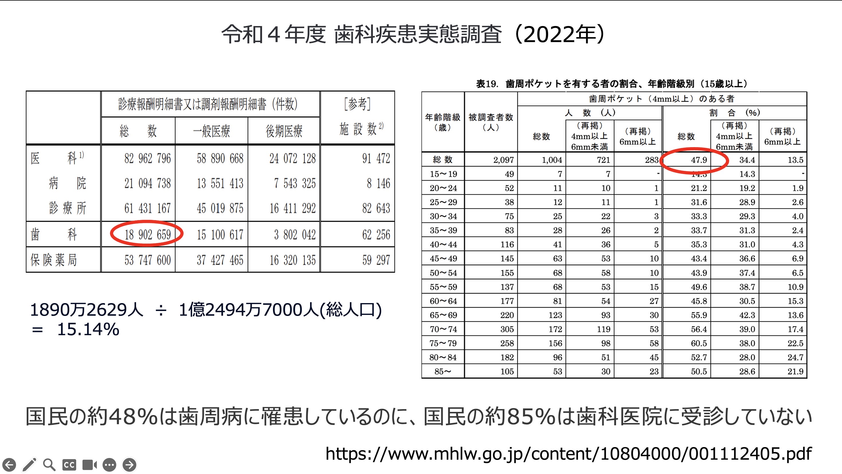 ①歯科医院受診率が低い