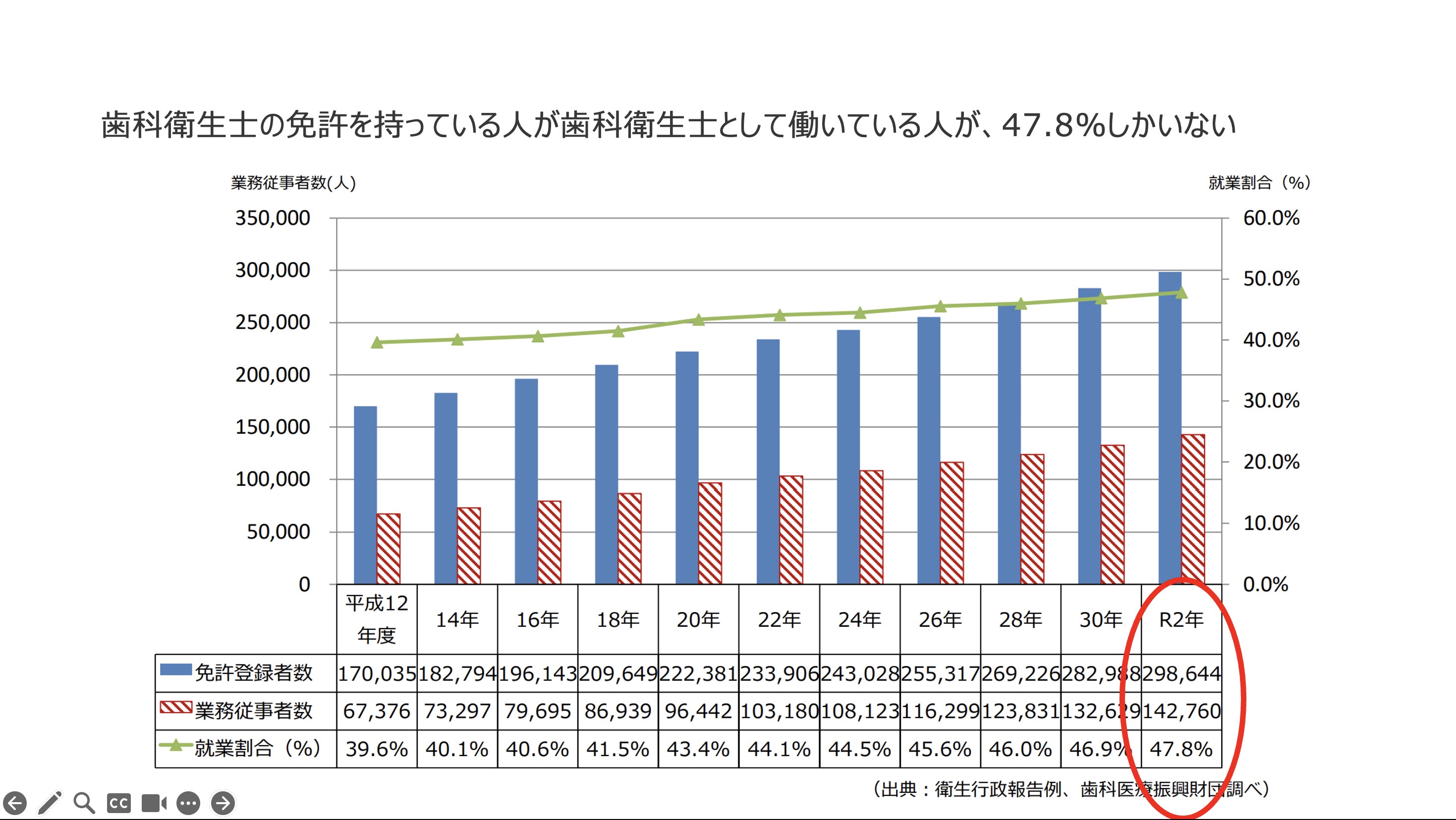 ②歯科衛生士の就業率が低い