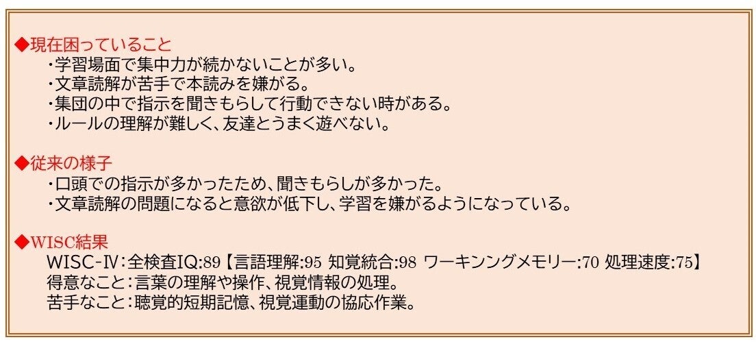 【事例2:文章読解が苦手で、聞きもらしが多い小2女児】