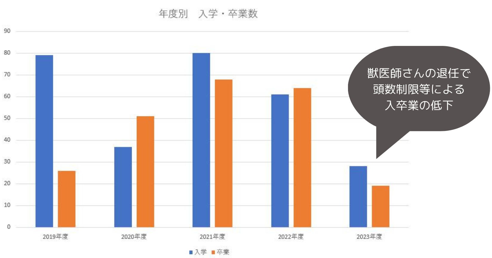 【長期的な運営の問題点:来校者数、入学卒業猫数の減少】