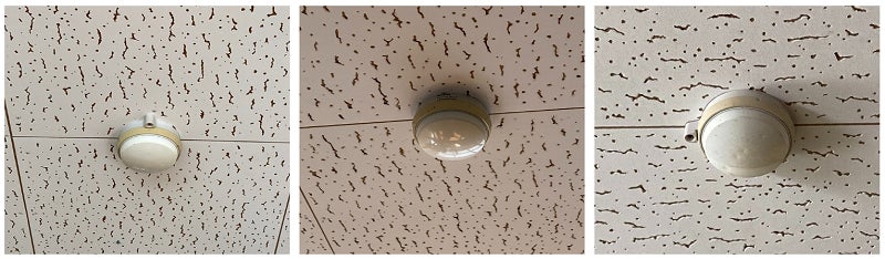▲各教室の火災感知器。使用していない空教室も全て検査・交換が必要です。