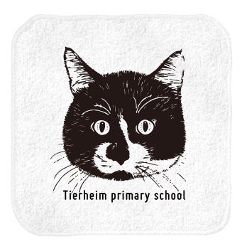 オリジナルのハンドタオルです。イラストのロイ君は当校のシンボル的な猫で、いまは卒業して幸せに暮らしています。