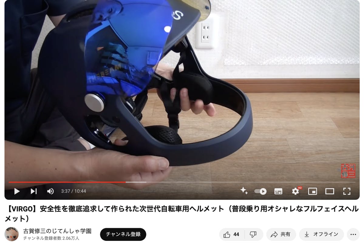 自転車整備や安全な自転車走行に関する知識をアップする人気サイクリストYoutuber、古賀修三のじてんしゃ学園様にVIRGOヘルメットを紹介していただきました!