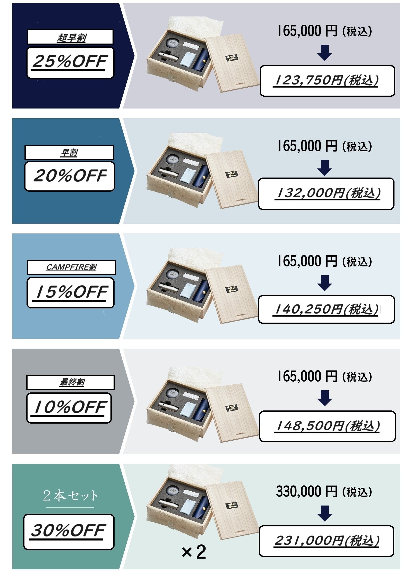 ※本プロジェクトを通して想定を上回る皆様からご支援を頂き、現在進めている環境から量産体制を更に整えることができた 場合、正規販売価格が販売予定価格より下がる可能性もございます。