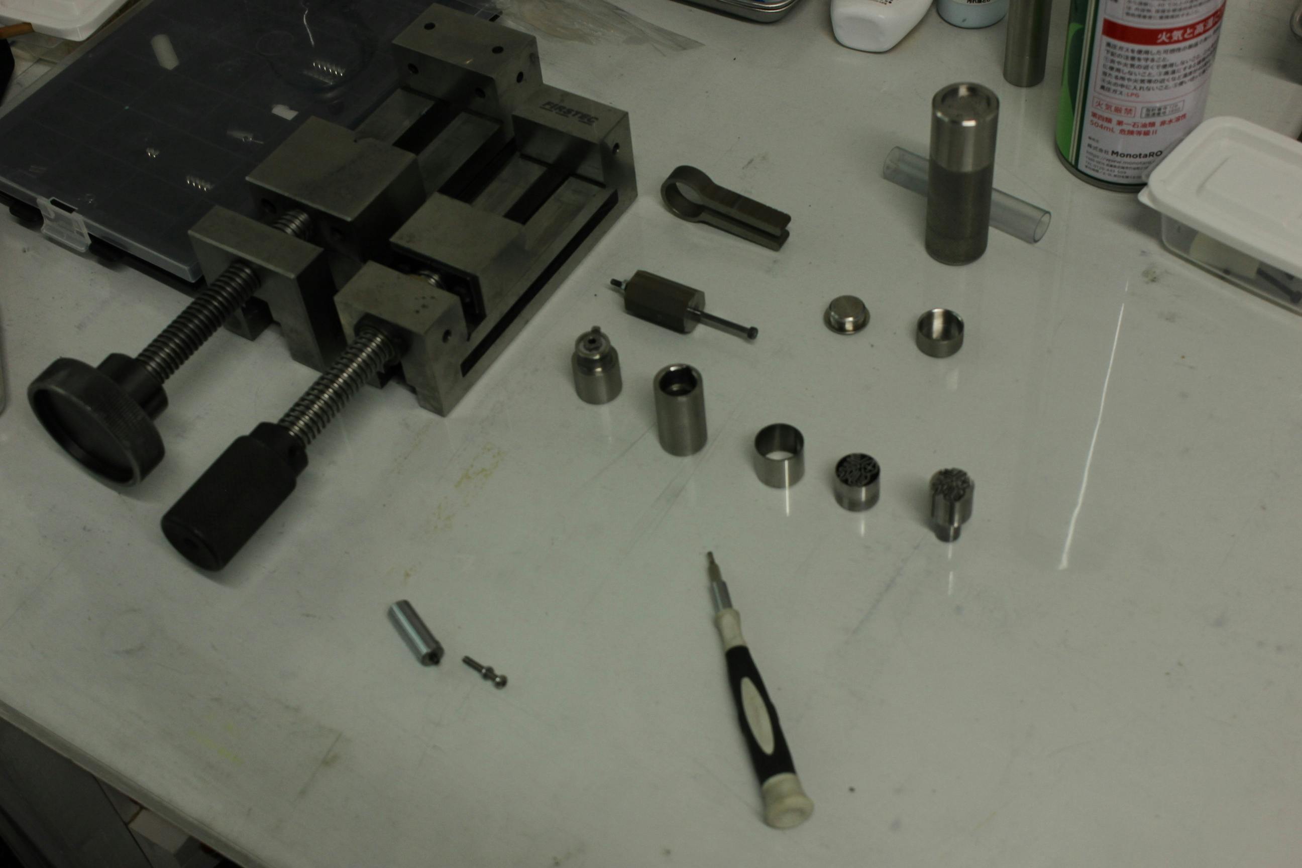 ⑥ 材料に高温の熱を加え材料の硬度を出し、研磨。厚み15.000(±0.001)mmにする。