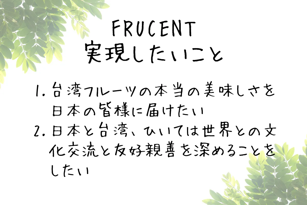 FRUCENT(フルセント)は台湾の産地・農家からさまざまな生フルーツを受け取っています。また、農産物を通じ、日本と台湾、ひいては世界との文化交流と友好親善を深める為、日々頑張っております。