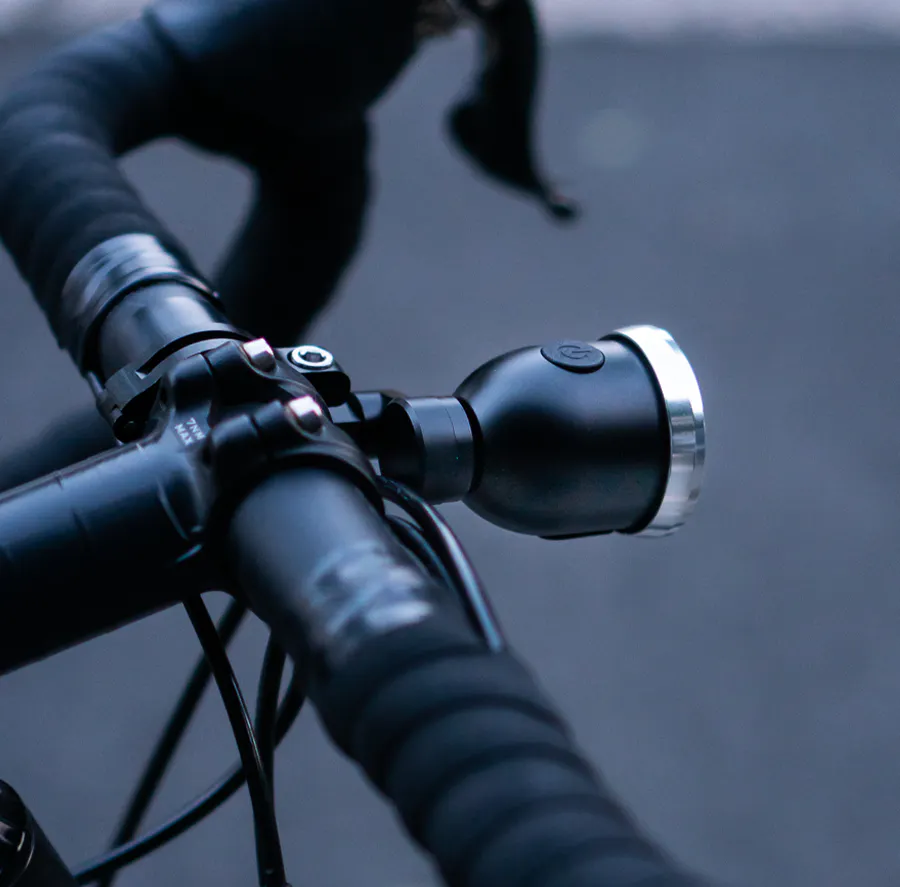 しかし、これらの制約をすべて盛り込んだ結果、手のひらに収まる美しくコンパクトな充電式ヘッドランプ、センターライトが誕生したのです。。アルミニウムから削り出された、毎日のサイクリングに最適な自転車用ライトです。