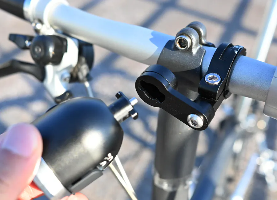商品名の通り、ハンドルの中央に取り付けることができ、ハンドル周りのゴチャつきもナシ!