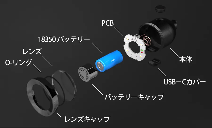 ライト本体は、十分な電池寿命と明るさを保ちつつ、ポケットに入るコンパクトさが求められました。