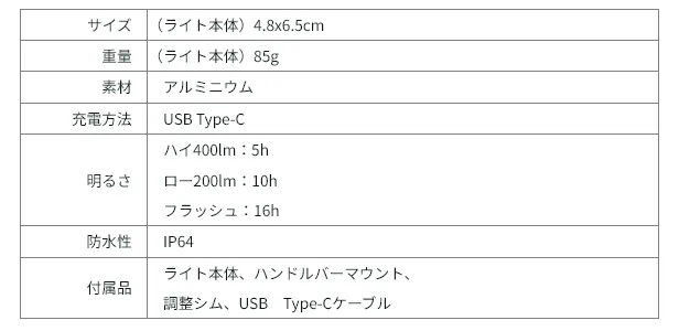 ライト本体は85gと軽量