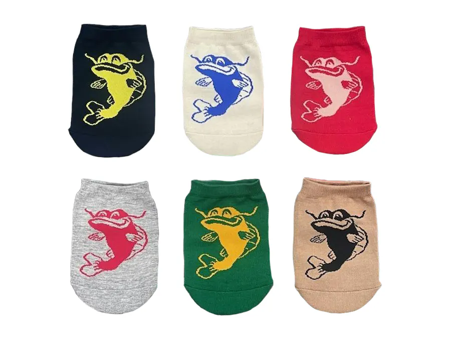靴下付きのリターンをお選びいただいた方にはお返しとして、「ナマズくんオリジナル靴下」をお送りいたします。