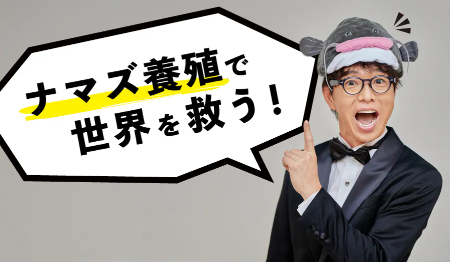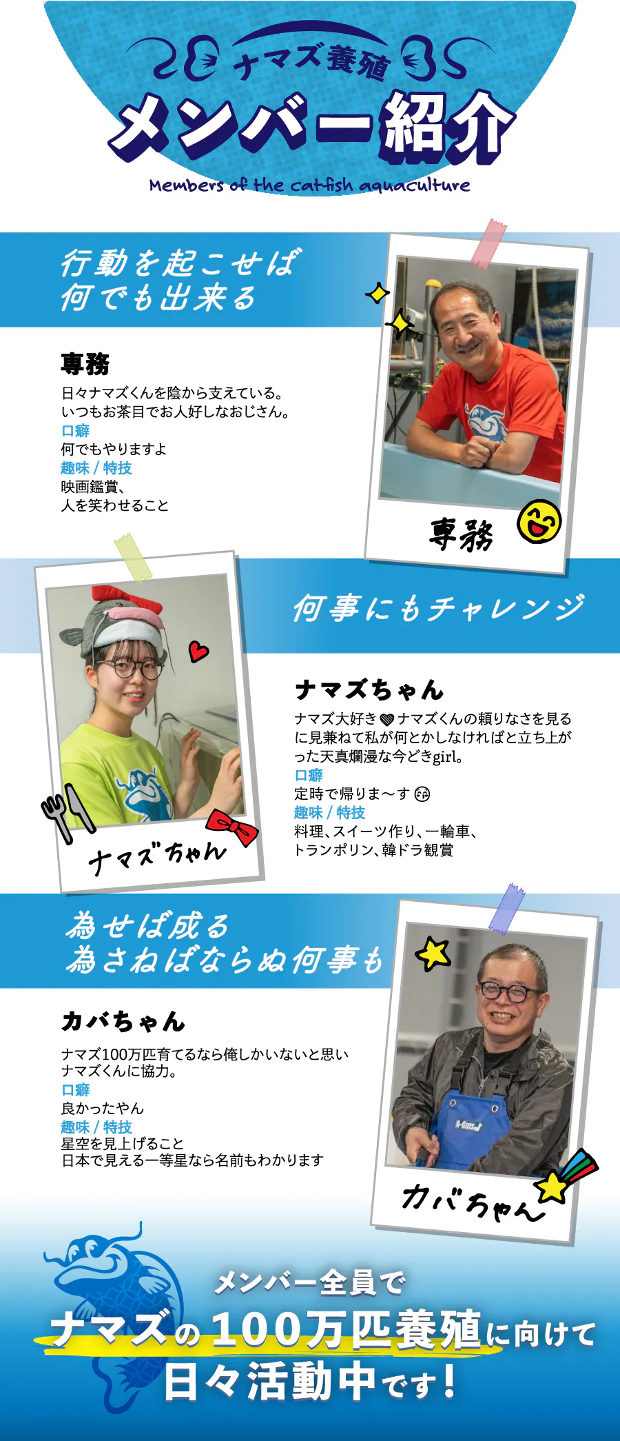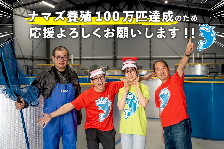 キャッチフレーズは「僕は1億円をかけてナマズの100万匹養殖にチャレンジするナマズくん」