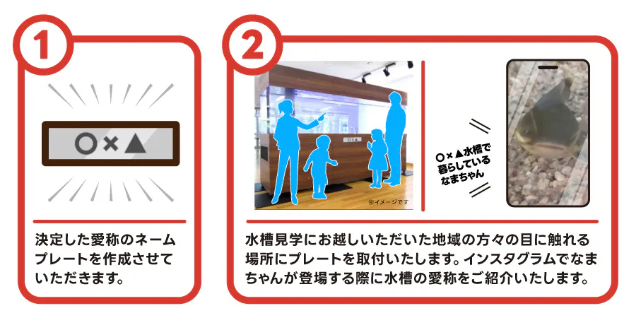奇跡の一匹「なまちゃん」を世界一大きなナマズに育て上げ、巨大展示水槽で多くの方に見てもらいたい。そして広くナマズのことを一般の方にも認知していただきたいと考えています。また、春先から子供たちに養殖ナマズのエサやり体験会も実施していく予定です。