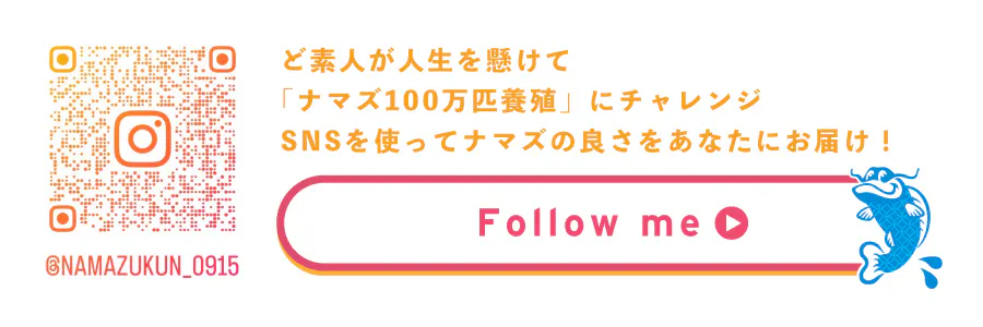 Instagram(@namazukun_0915)をフォローしていただけるとナマズ養殖を盛り上げていく励みになります。ぜひ応援宜しくお願いいたします!
