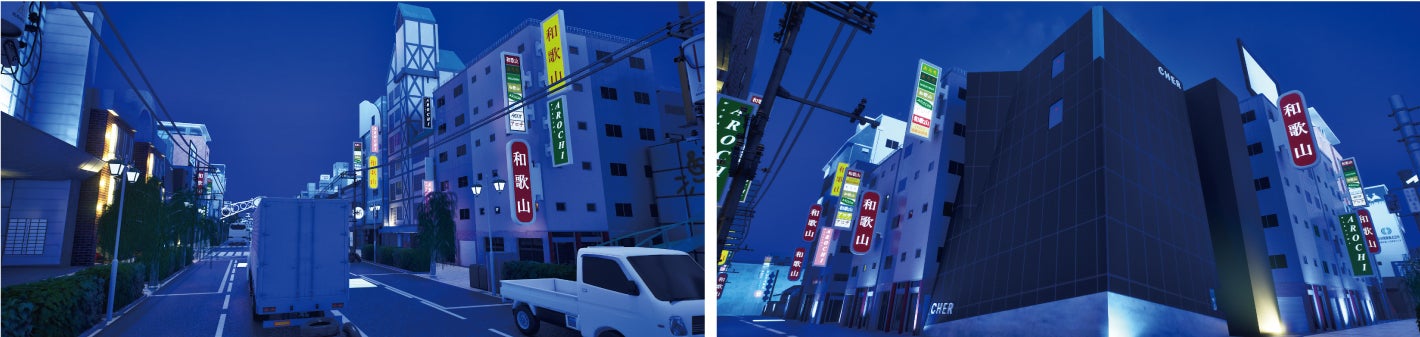 この事業では、世界的人気オンラインゲーム「Fortnite(フォートナイト)」内に「和歌山城」「和歌山駅前」そして、和歌山最大の繁華街である「新内(アロチ)」を再現し、世界中のプレイヤーに新しい形で和歌山の魅力を発信しています。