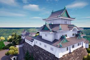 和歌山城の再建時の図面をもとに、お城の内部を細部までこだわって再現しました。屋根の上や天守閣内での戦闘も可能で、歴史とアクションが融合した迫力あるマップです。