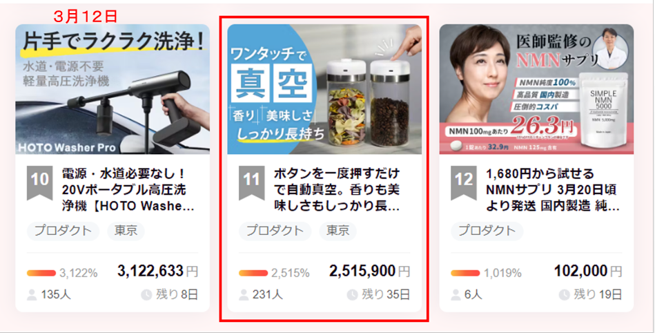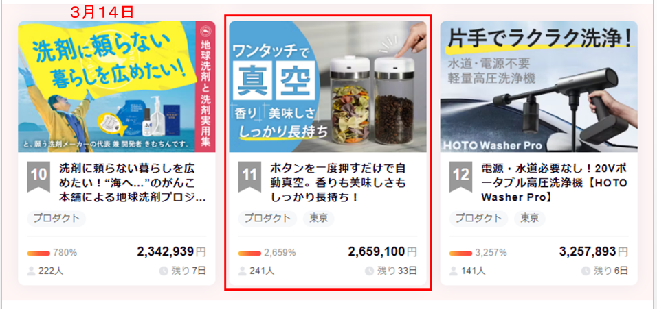 皆さんこんばんは、Brightチームです。この度は「「ボタンを一度押すだけで自動真空。香りも美味しさもしっかり長持ち!【SHELBRUスマートキャニスター】」を支援いただき、本当にありがとうございます。おかげさまで開始から2時間で目標を達成することが出来ました。また本日の人気ランキングプロダクト部門で11位に入賞することが出来ました!<・真空から解除までがボタン1つ押すだけ!シンプル操作でたった15秒で真空が作れる。・最大20Kpaの強力な吸引力で余分な空気を抜いて酸化や湿気、ホコリなどから食材を守る!・真空度が下がると勝手に酸素を放出!お気に入りのコーヒー豆やシリアルなど、美味しさが長持ち!>皆さまの支援を励みに、喜んでいただける製品作りに努めてまいります。https://camp-fire.jp/projects/view/7310824月中旬まで販売期間は続きますので、ぜひSNSでのシェアや身近な方にもおすすめしていただけると嬉しく思います。#shelbru #brightdiyどうぞよろしくお願いいたします。ありがとうございました。Brightチーム