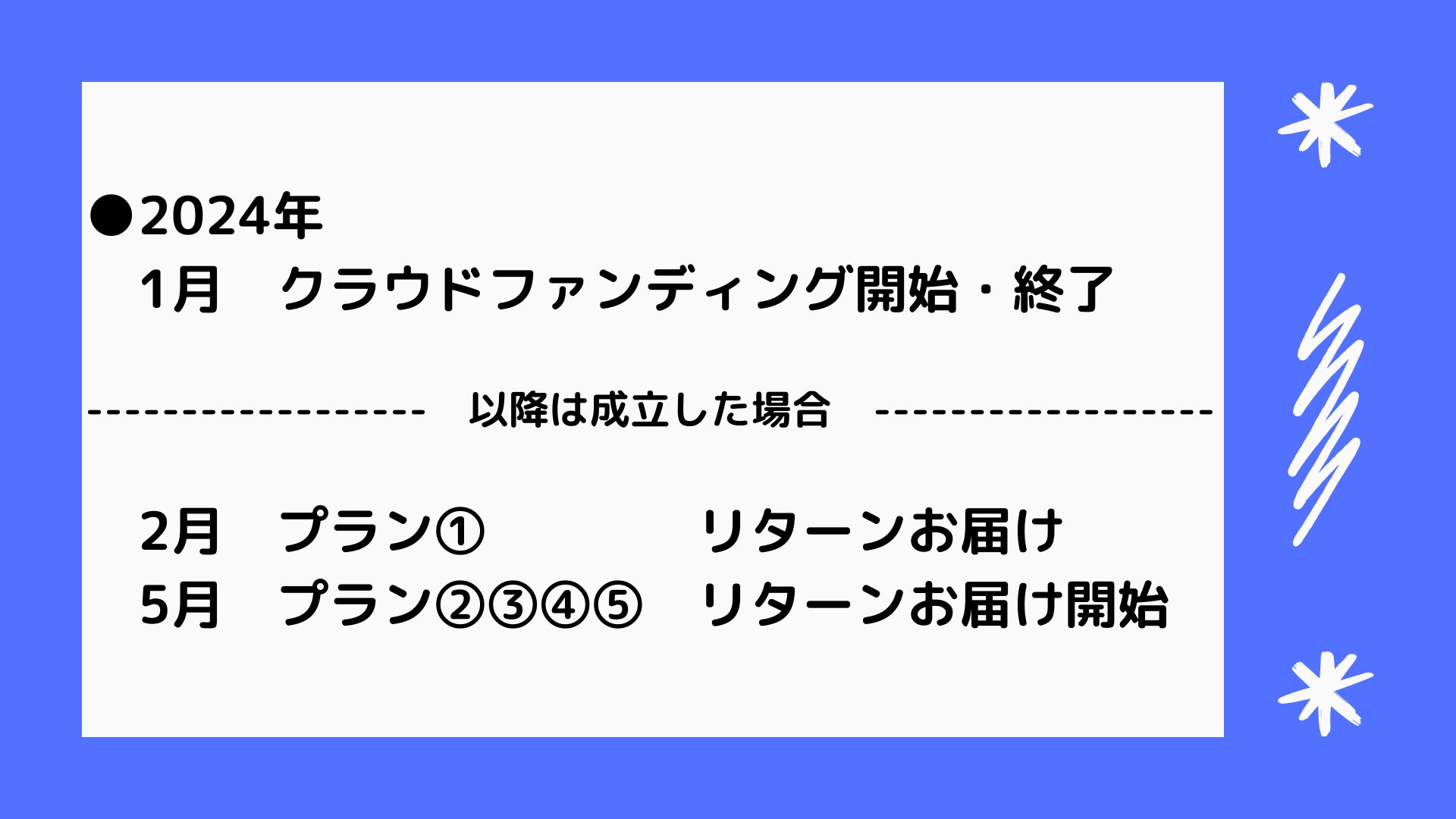 目標金額に満たない場合、計画の実行及びリターンのお届けはございません。