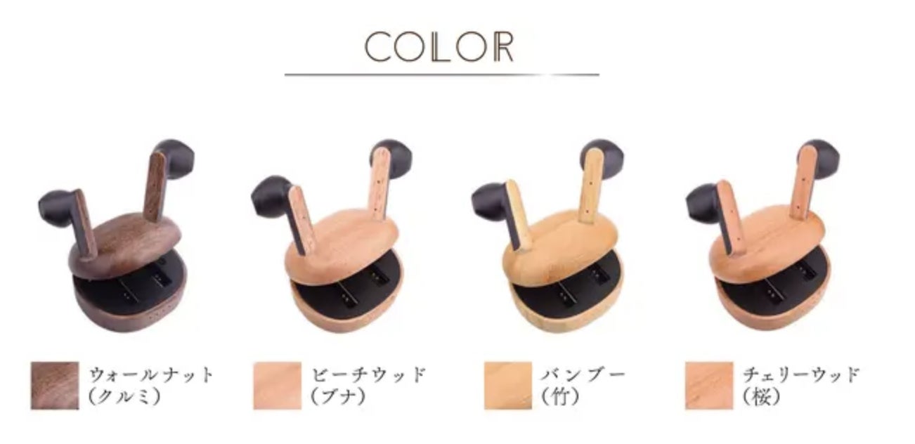さらに、WoodSoundでは木の本来の「天然の色味」や「木目」を生かして作っています。今回、皆様にお好みの木を選んでいただきたいと思い、4種類ご用意しました!種類は「ウォールナット(クルミ)」、「ビーチウッド(ブナ)」、「バンブー(竹)」、「チェリーウッド(桜)」。木材によって異なる雰囲気が楽しめるので、ご自身にぴったりの種類をお選びください!
