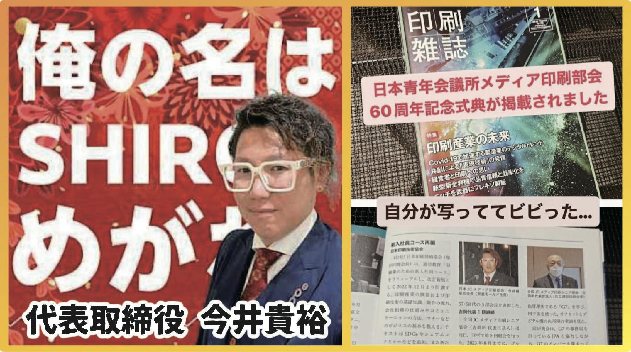 2022年に、日本全国の青年印刷人の集まる組合の1つである、日本青年会議所メディア印刷部会 第60代部会長として、印刷業界の発展に尽力。月間「印刷雑誌」様に部会創立60周年記念式典の様子を取り上げていただきました。