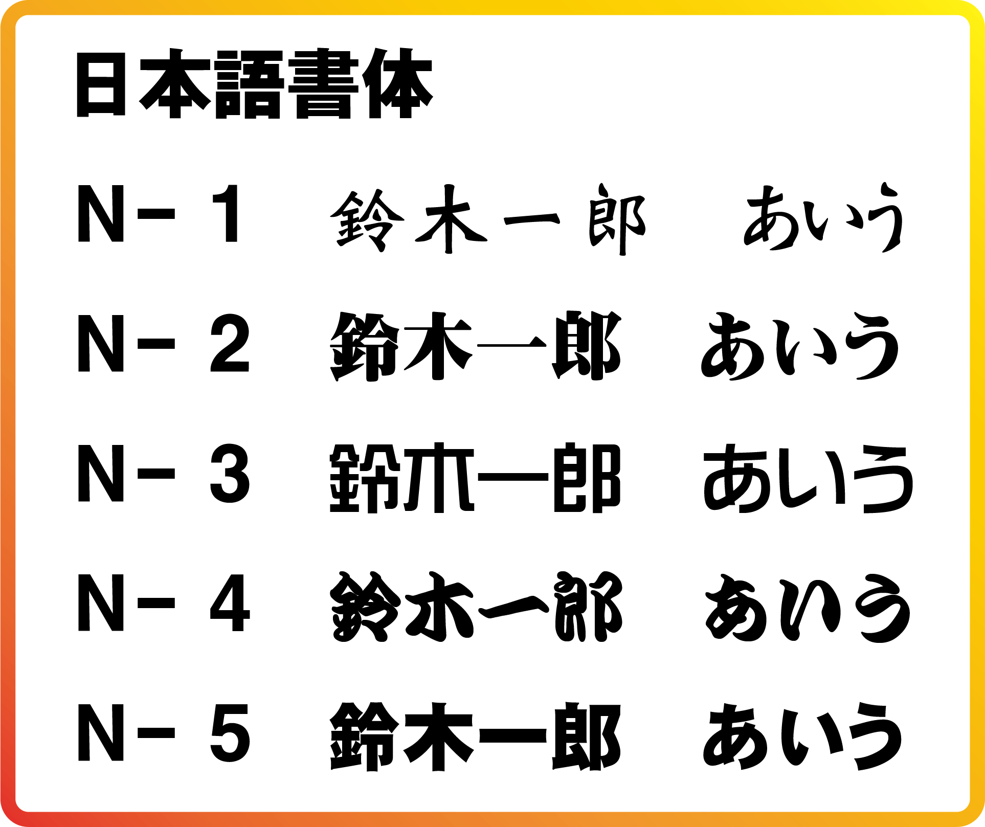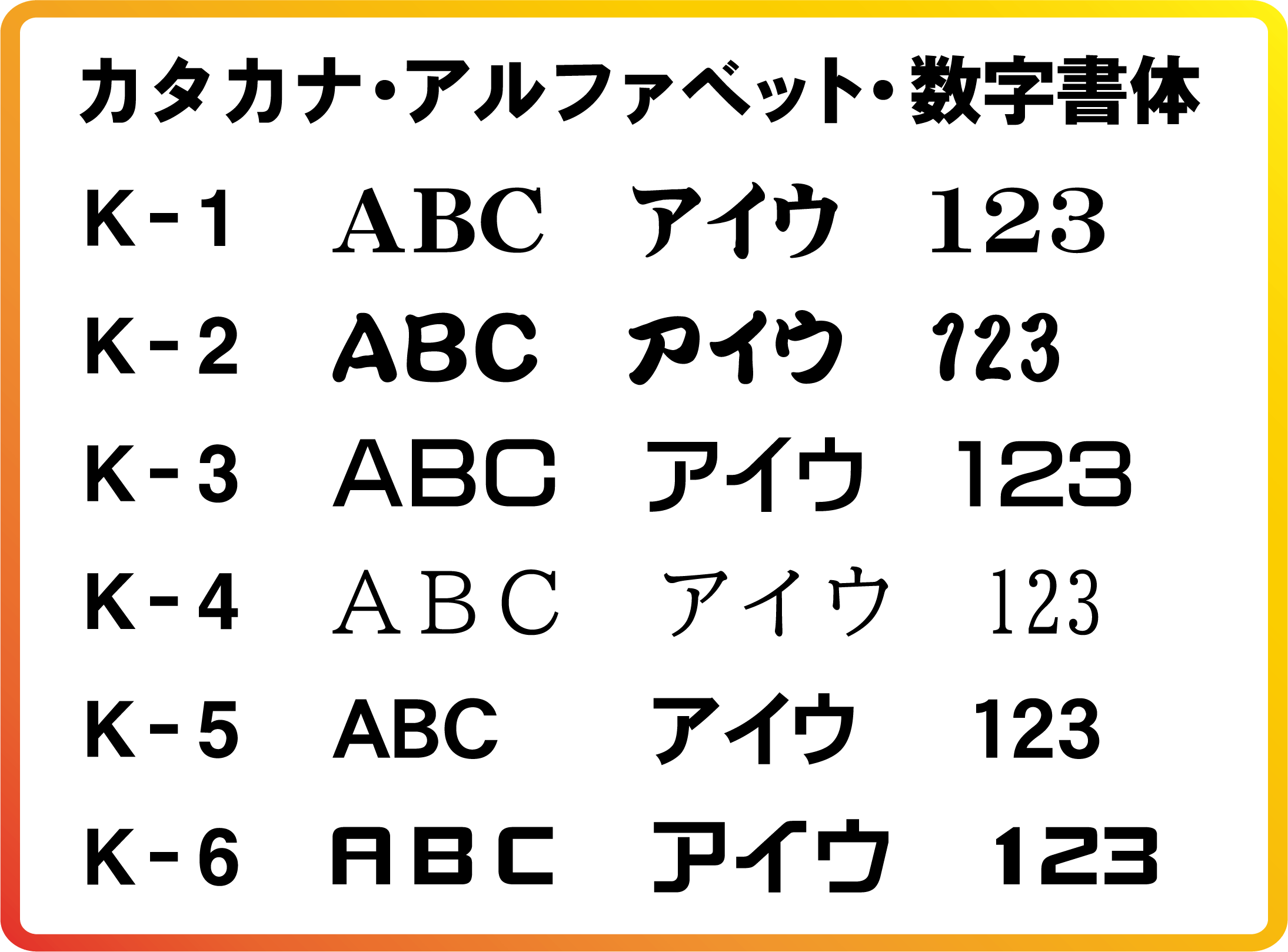 刻印する書体は下記からお選びいただき、リターン品購入時に備考欄に御記入ください。