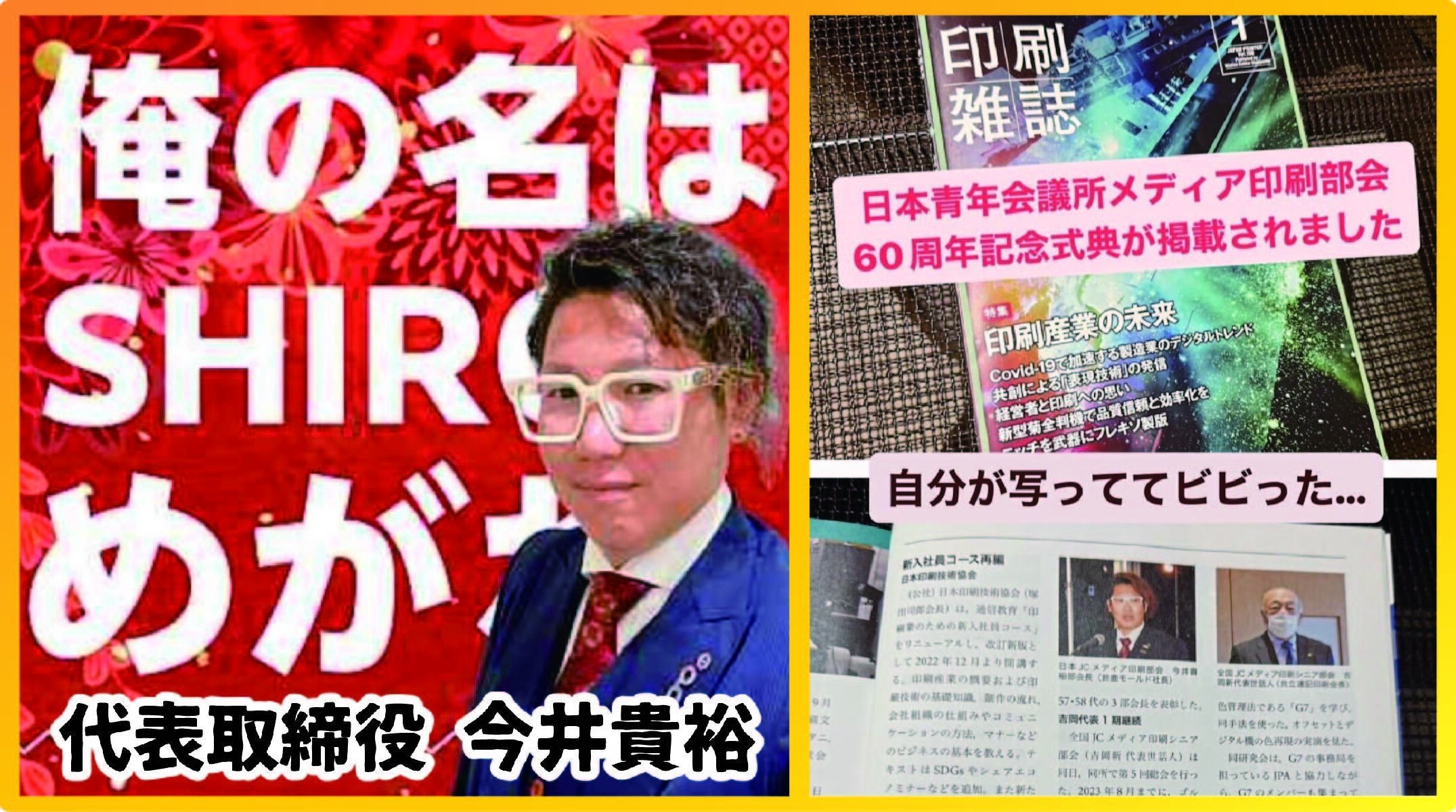 2022年に、日本全国の青年印刷人の集まる組合の1つである、日本青年会議所メディア印刷部会 第60代部会長として、印刷業界の発展に尽力。月間「印刷雑誌」様に部会創立60周年記念式典の様子を取り上げていただきました。