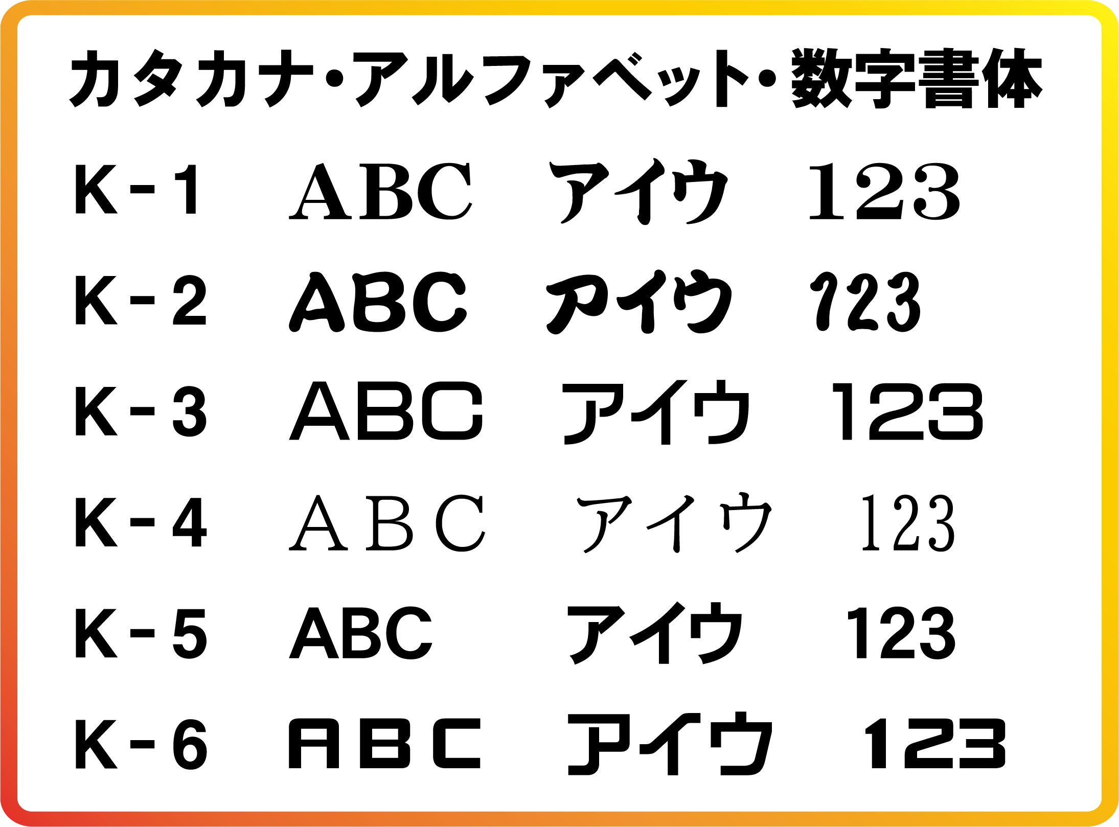 刻印する書体は下記からお選びいただき、リターン品購入時に備考欄に御記入ください。