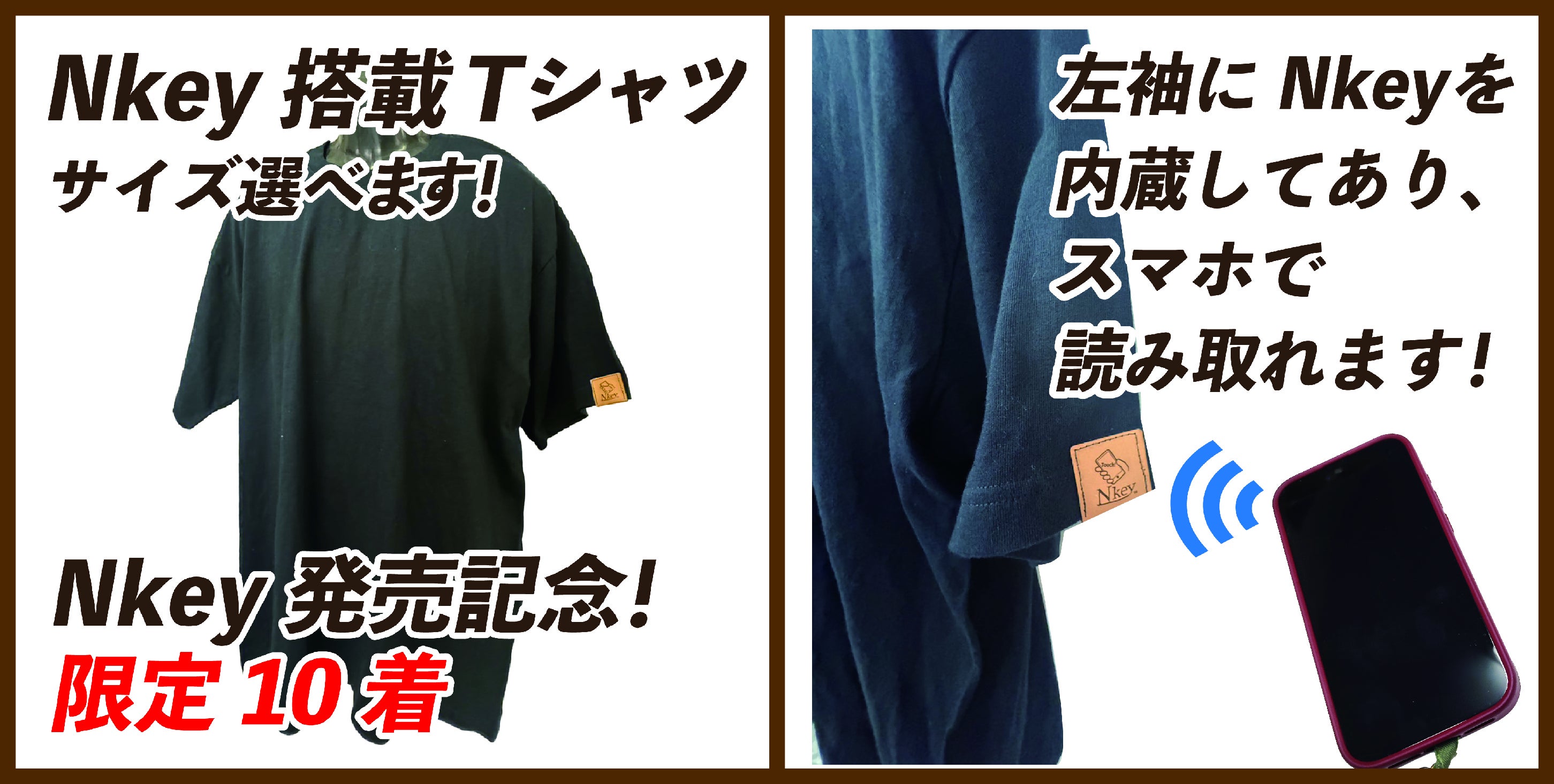 Nkey発売を記念して作成した「Nkey」を左袖のタグに内蔵したTシャツです。