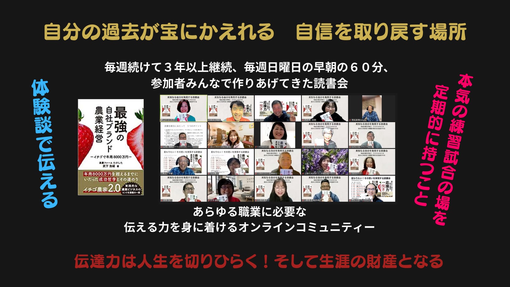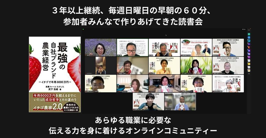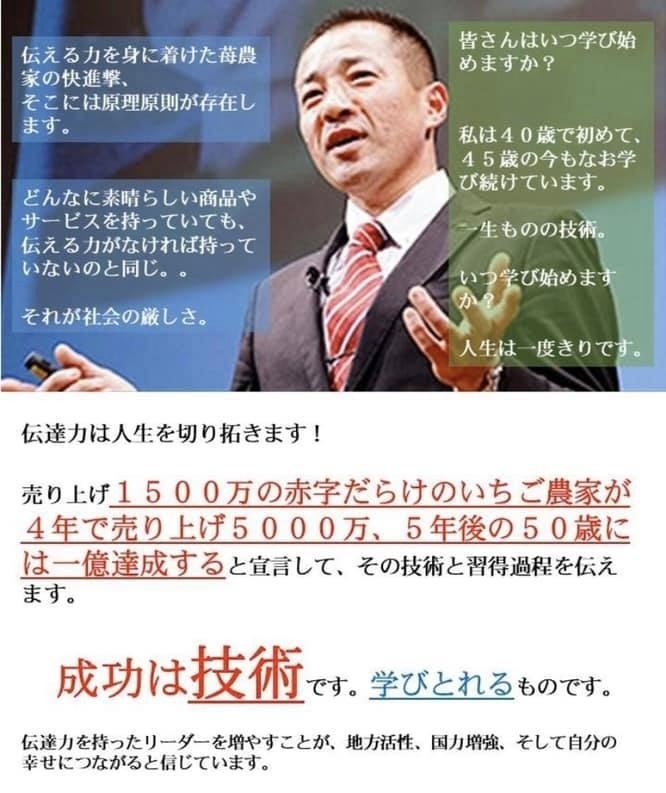 この会を通じて、私の存在を知り、苺農家一億円の挑戦を模倣していただくことで、