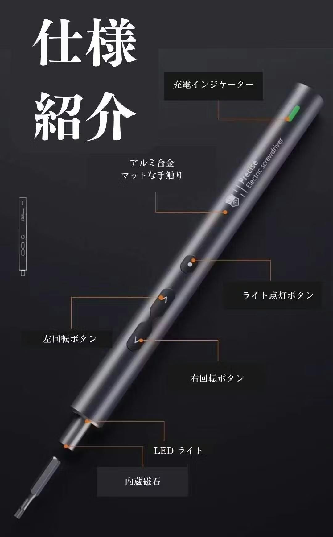 ② たった50gのコンパクトな本体、磁気でくっつくビットホルダーで落ちにくい!