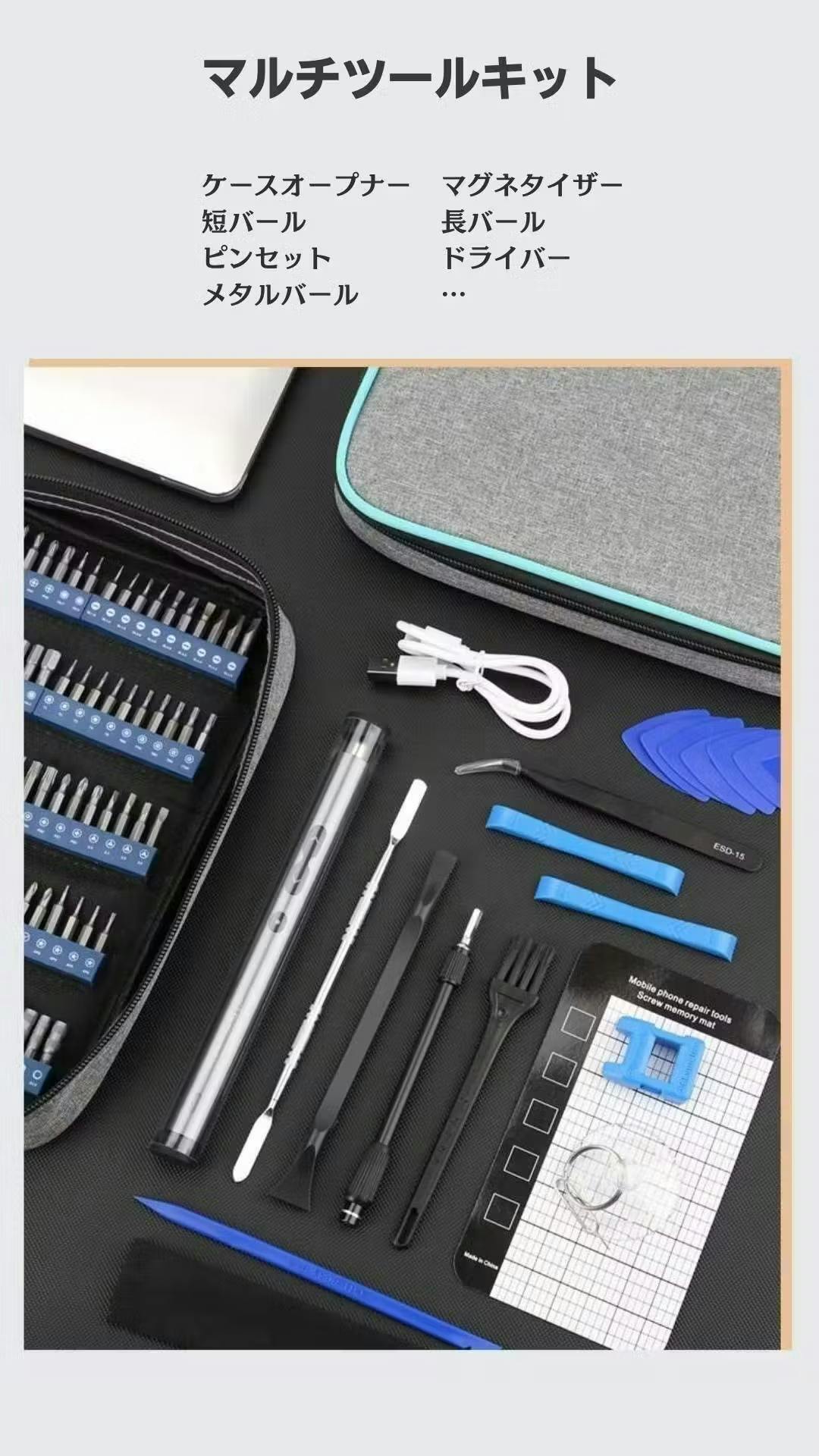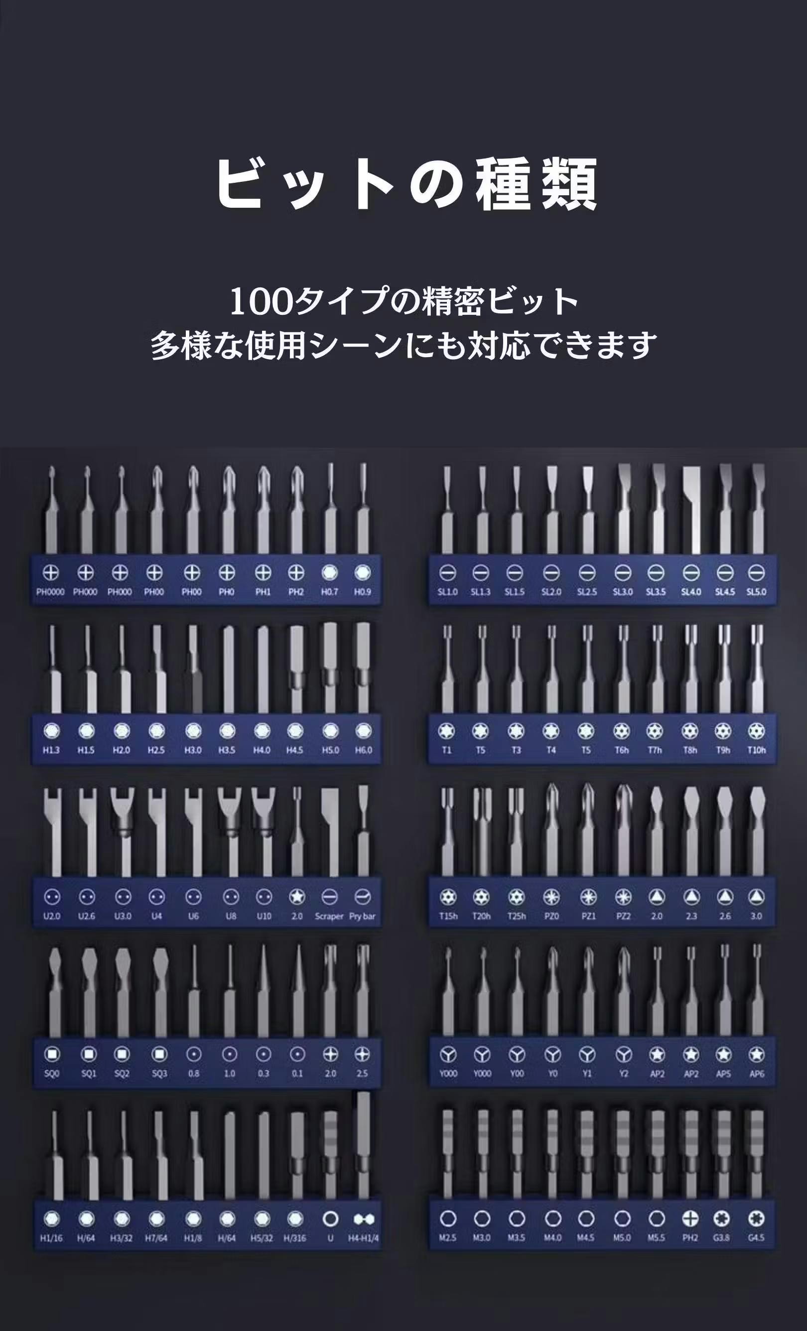 ① 100種類の高精度ビット + 20種のマルチツール付属。