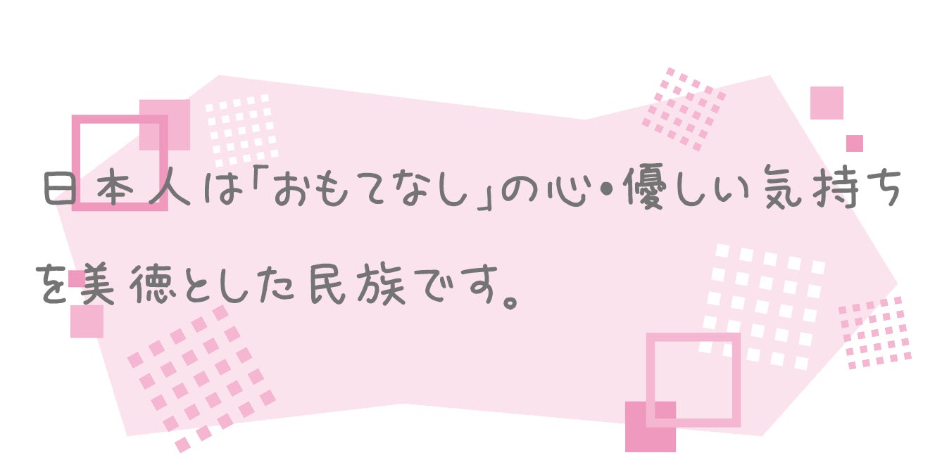 私たち日本人は「おもてなし」の心を持った民族です。またそれを美徳とした人種です。