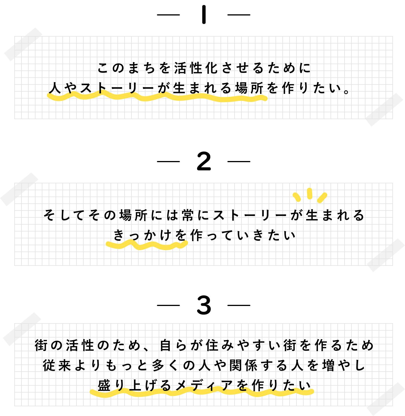 多くの人たちが関与することで、 街の「今」を 素早くキャッチし、すぐに発信できる場所を作りたいと思います。