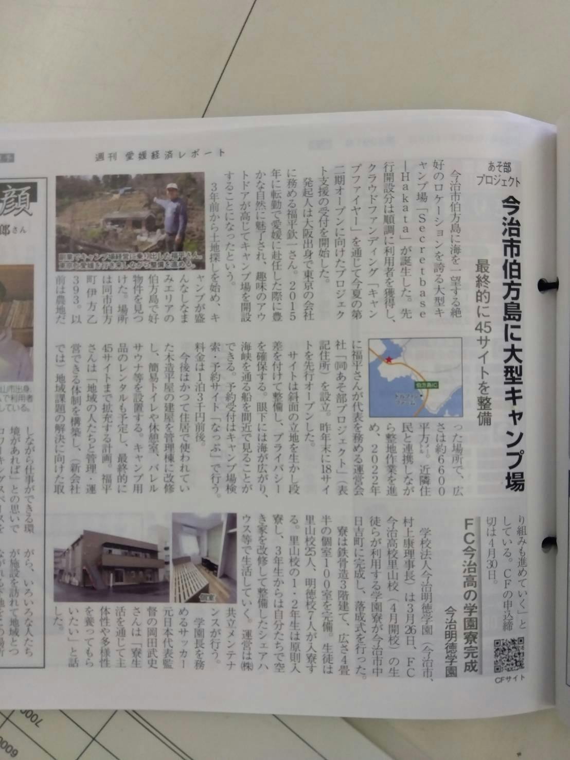 最終ギリギリで地元の新聞「愛媛経済サポート」に掲載されました。