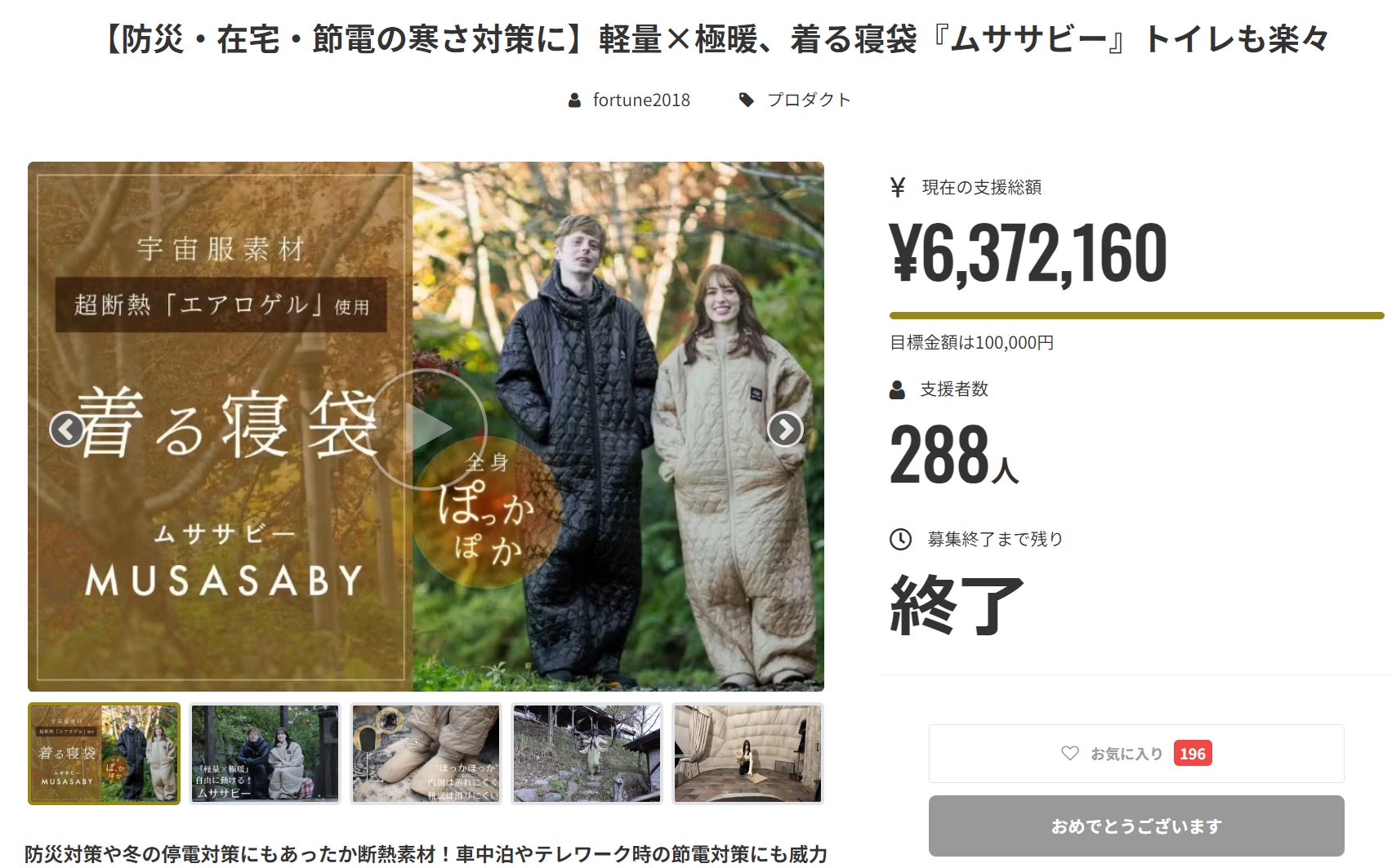 この度は、着る寝袋『ムササビー』のプロジェクトにご支援を頂きまして、誠にありがとうございます!