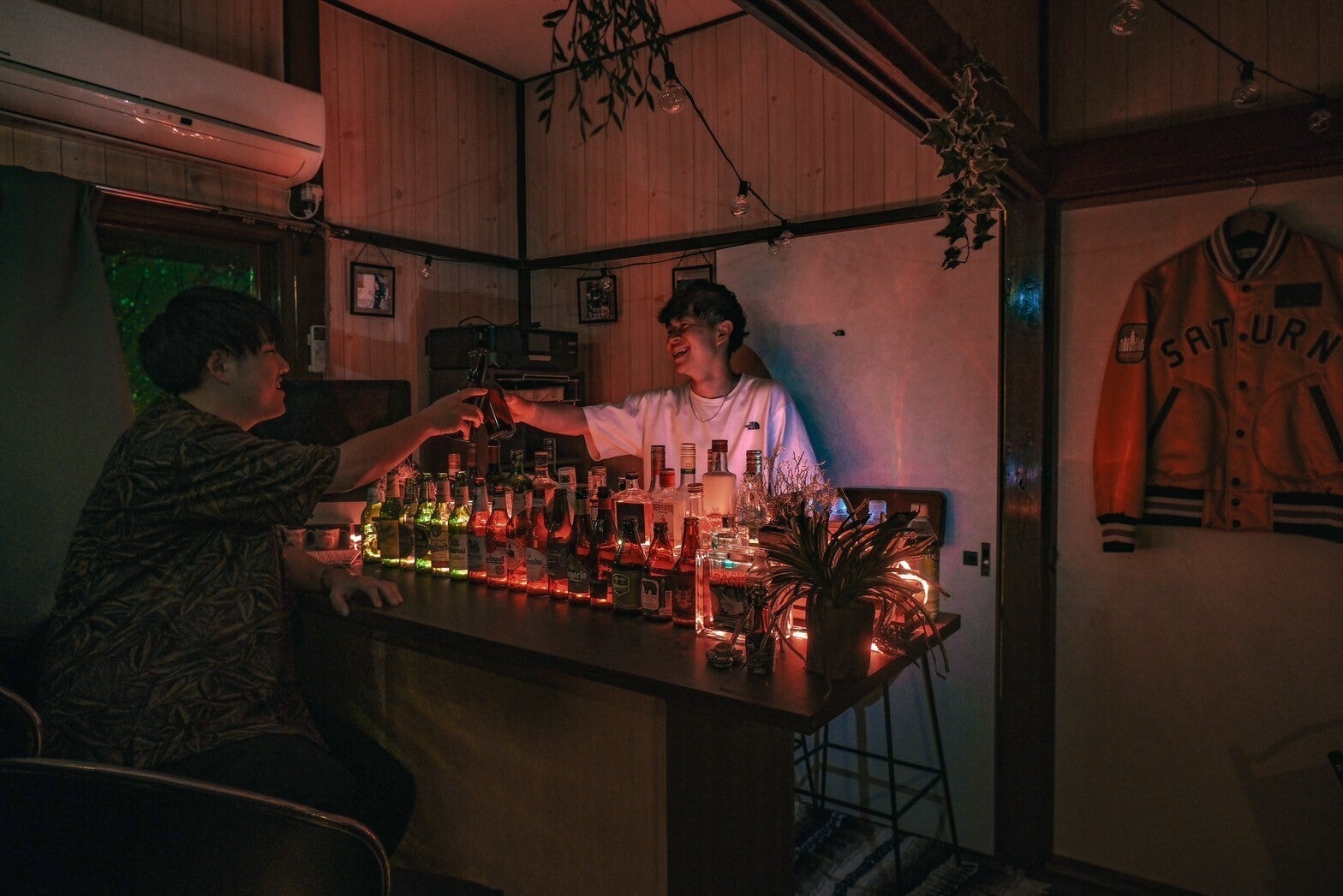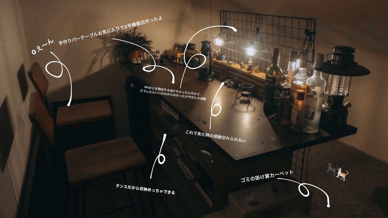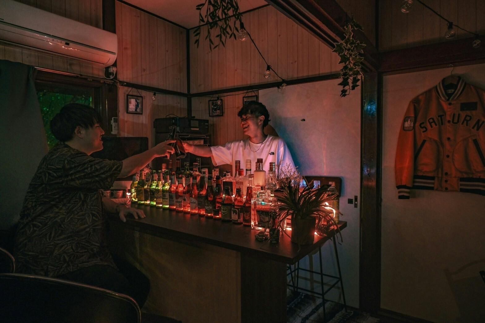 母が祖母からもらったタンスと仕切りを組み合わせ作ったBarカウンター