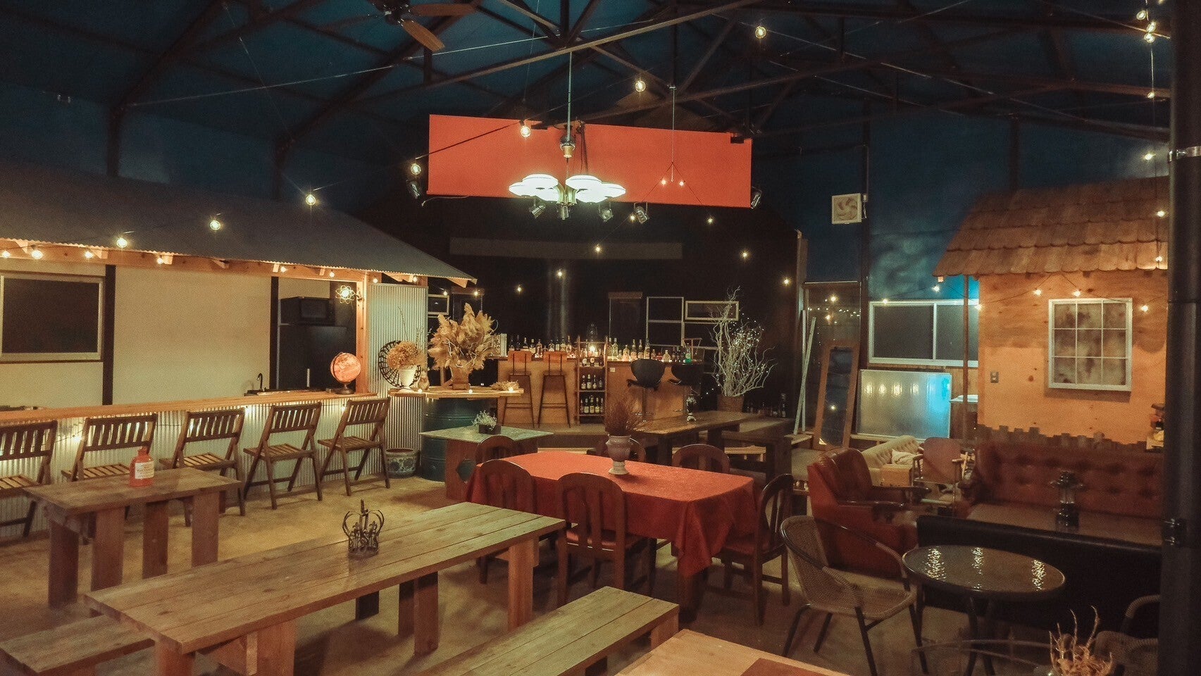 使われなくなった木材や家具、廃棄物を様々な場所から収集し、おしゃれなインテリアとして再利用。非日常を味わえる空間にデザインしました。