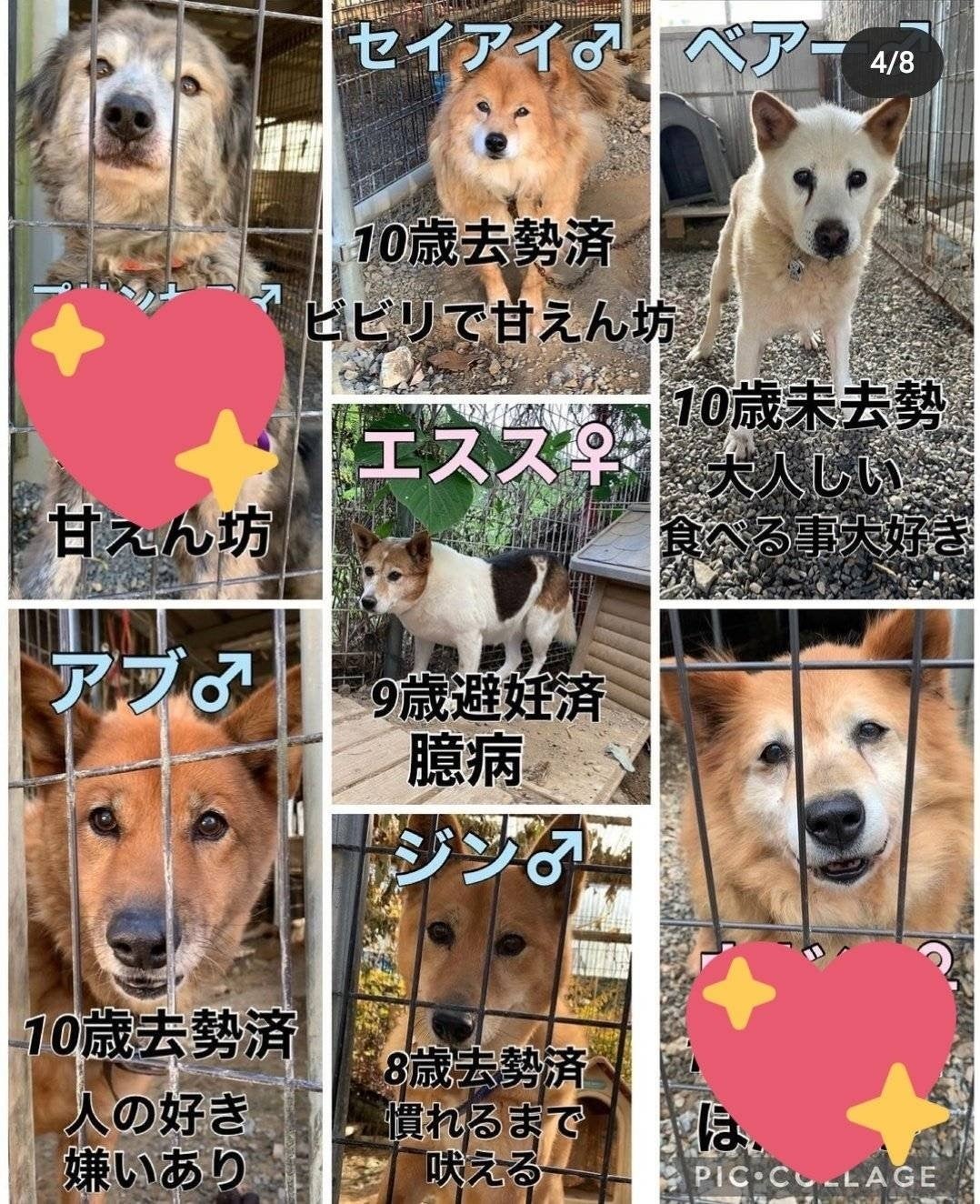 残されていた犬はシニアに足を突っ込んだ、中大型犬ばかり。