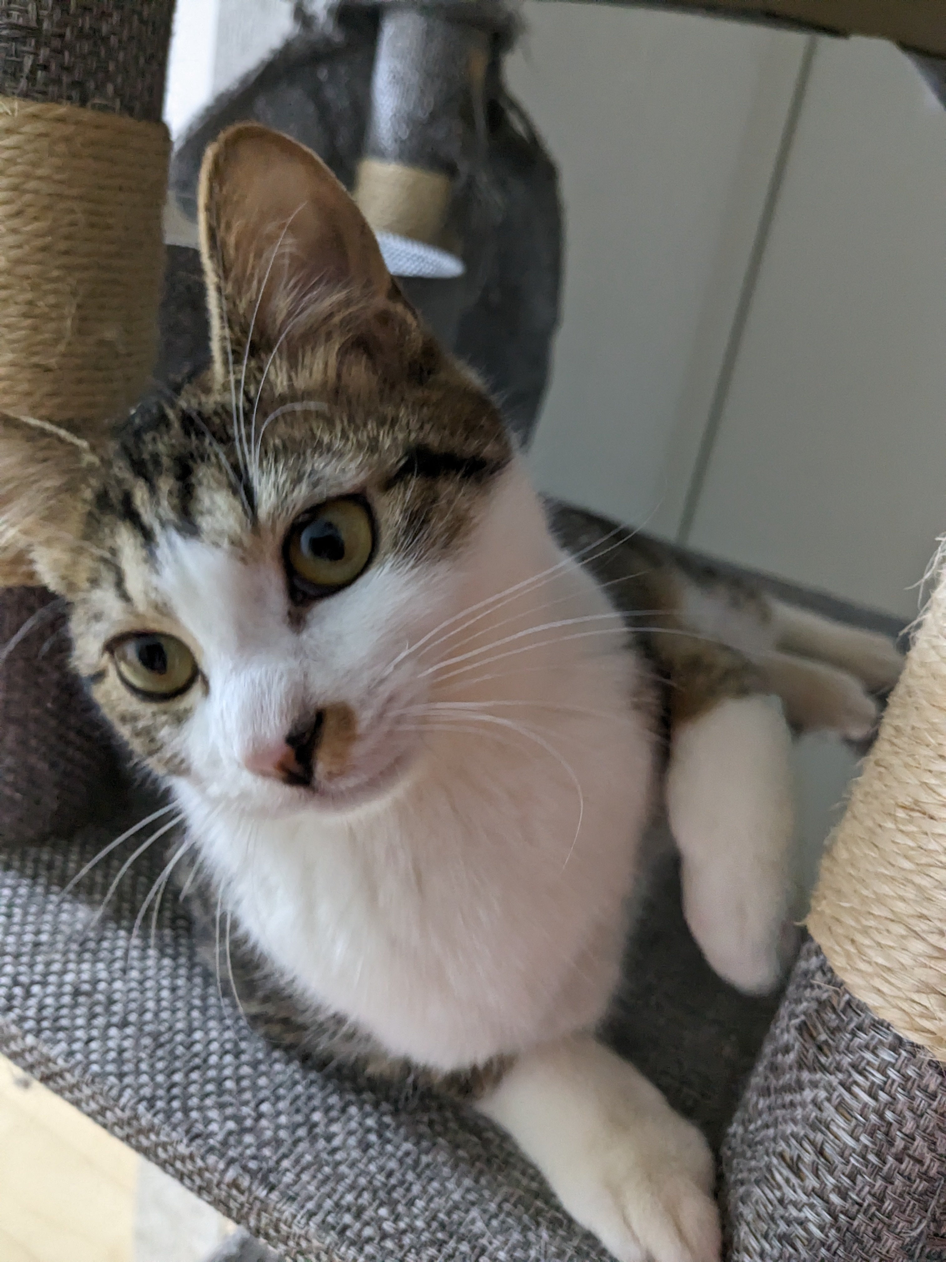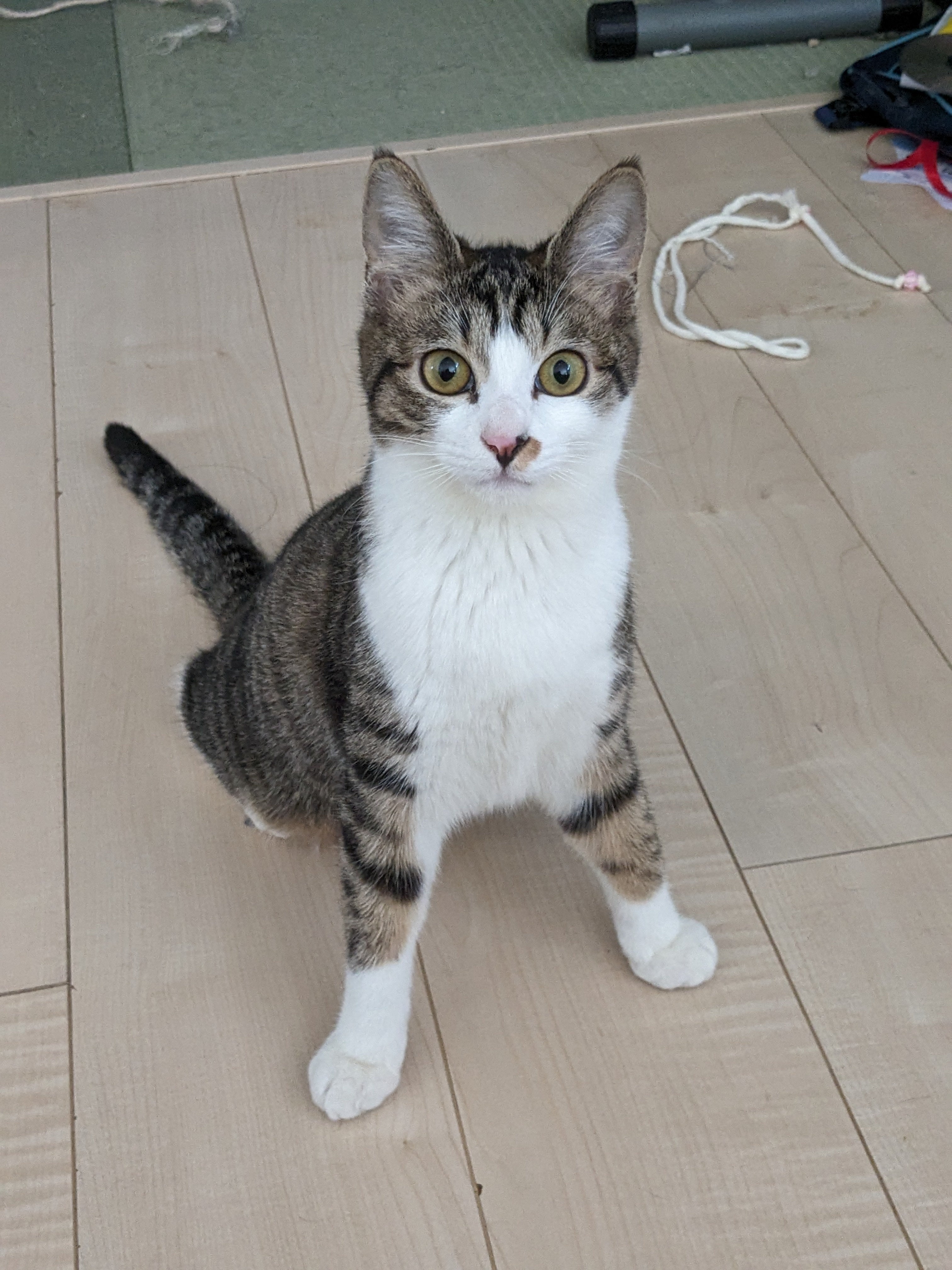 キャットタワーにも登れるようになったし、他の猫とニャンプロもするんだ。…ニャンプロは結構自信もあるにゃ(ドヤァ)