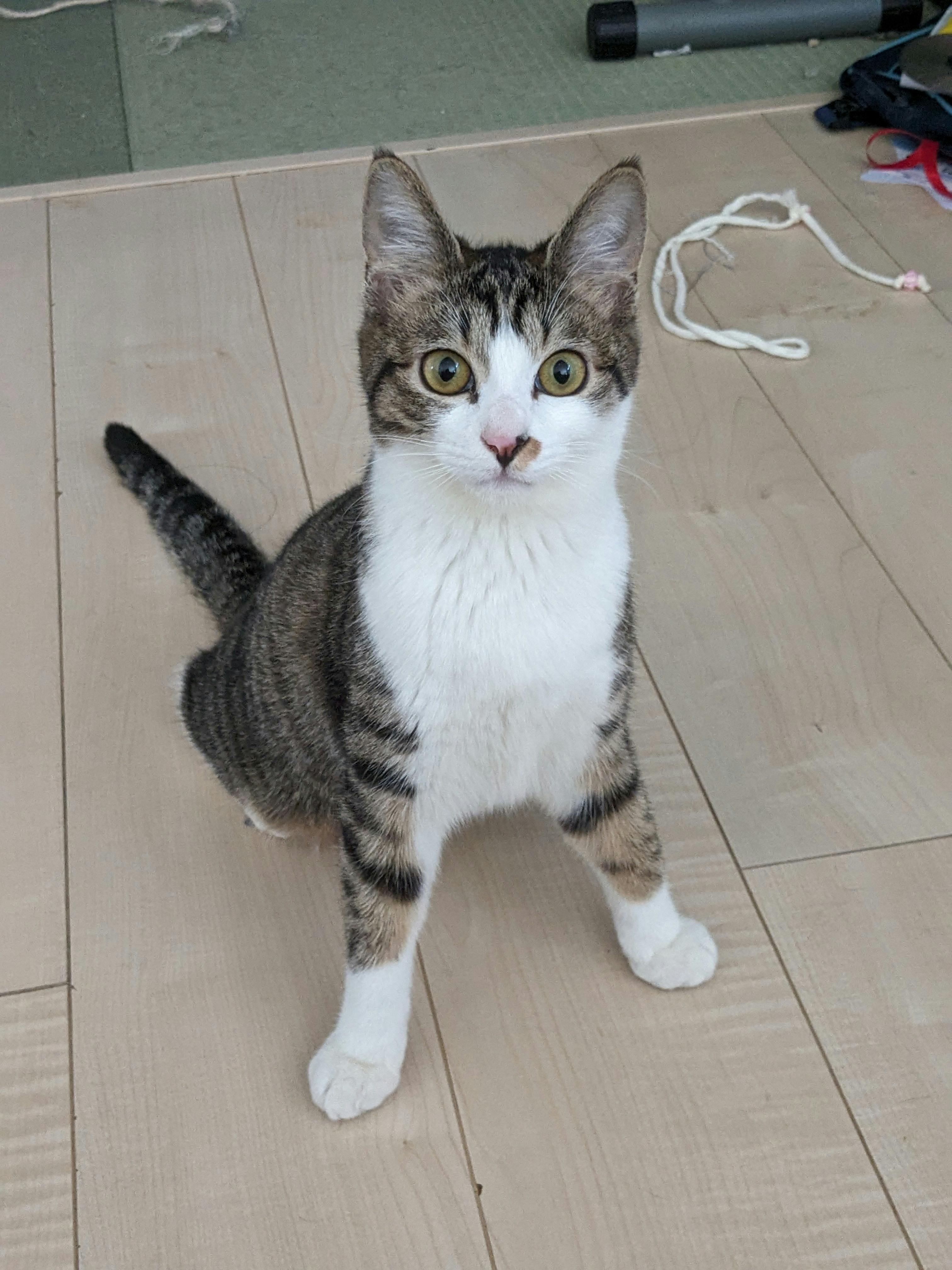 色はキジ白、齢は生後5ヶ月、見目麗しいニッポンだんじ。