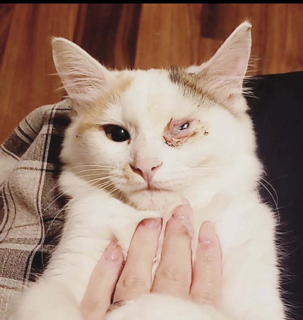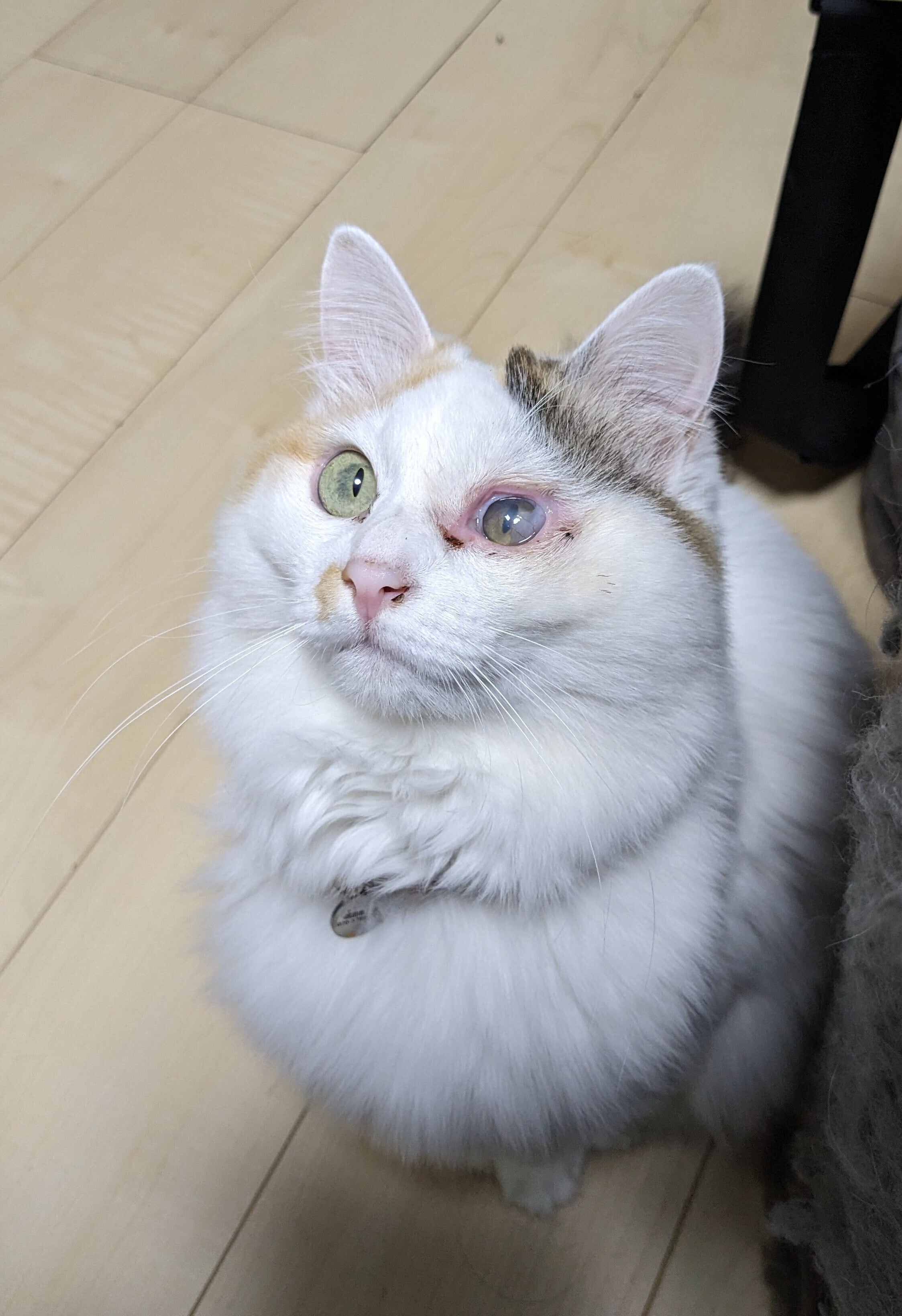 てんちゃんはその時の猫風邪の後遺症で左目の瞬膜が癒着してしまっていました。