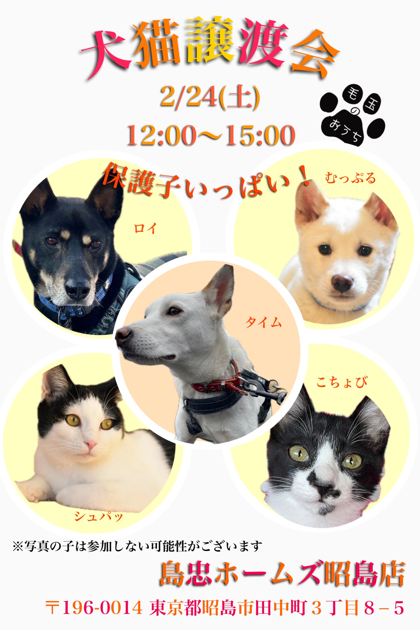 最後に、今週末の譲渡会のお知らせです。
