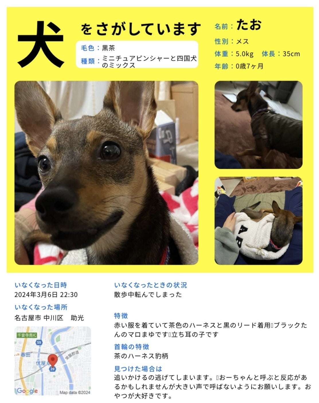 どうか、名古屋市で赤い服を着たミニピンのような子がいたら、代表のX(旧Twitter)までご一報を頂けませんでしょうか。